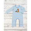 Blue Stripe Baby Boy Dog & Duck Appliqué Romper