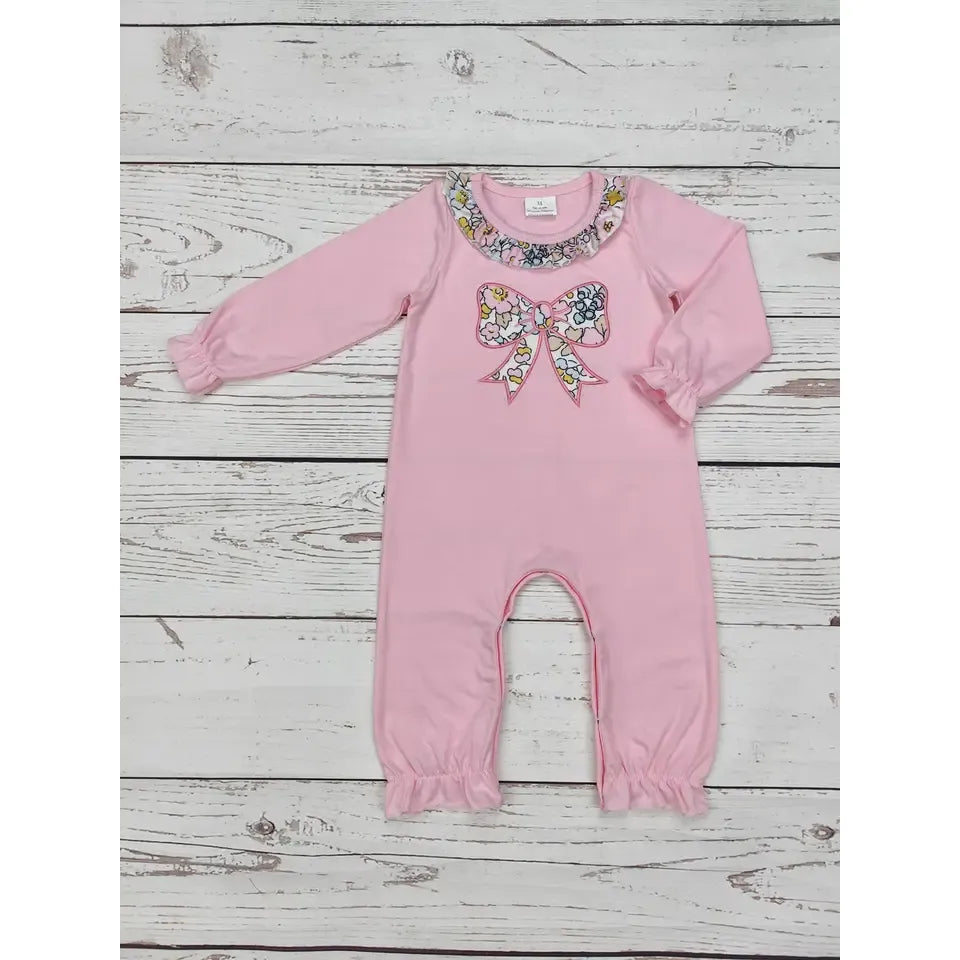Baby Girls Pink Bow Appliqué Romper
