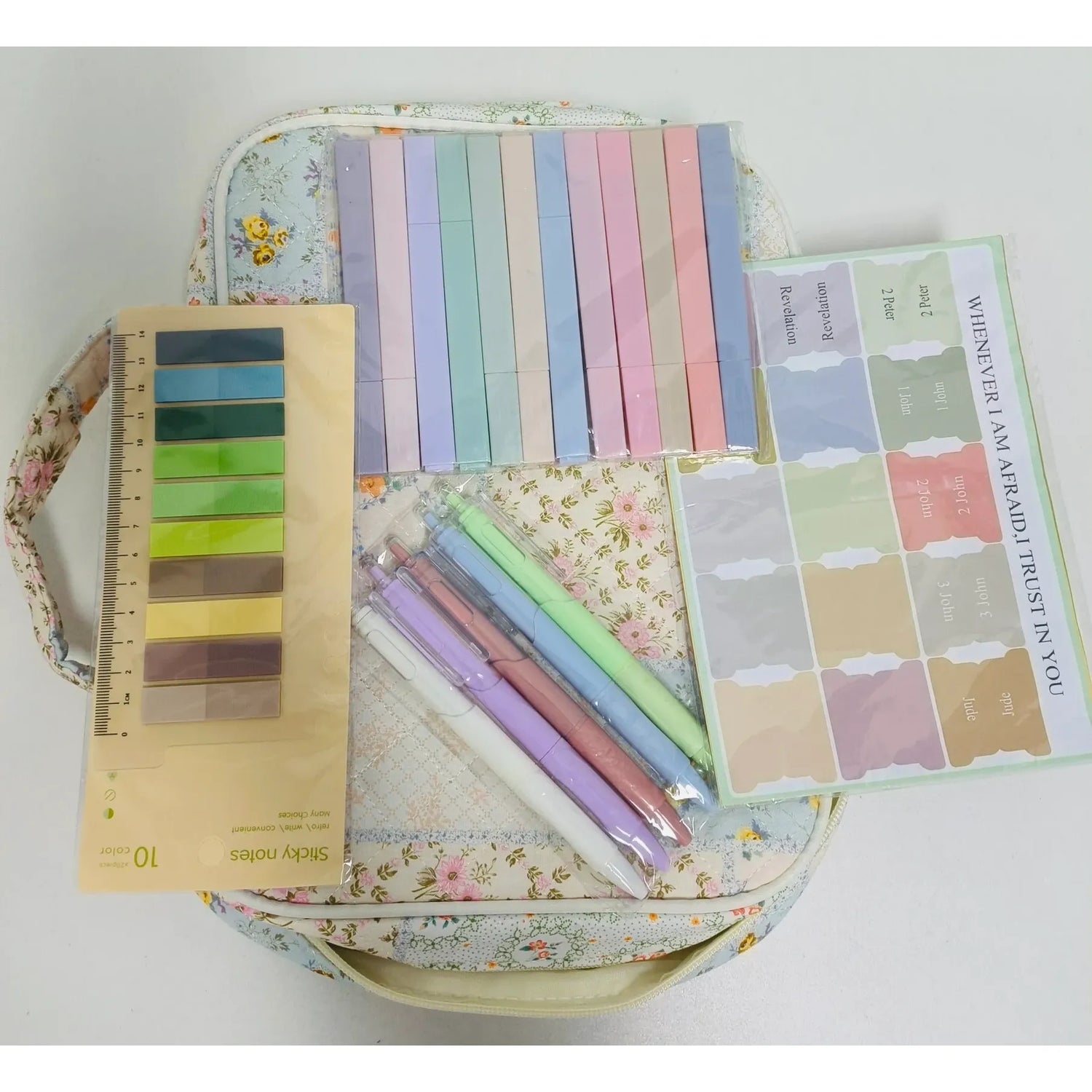 Pens, highlighters, tabs & sticky notes — everything you need inside your Bible cover!